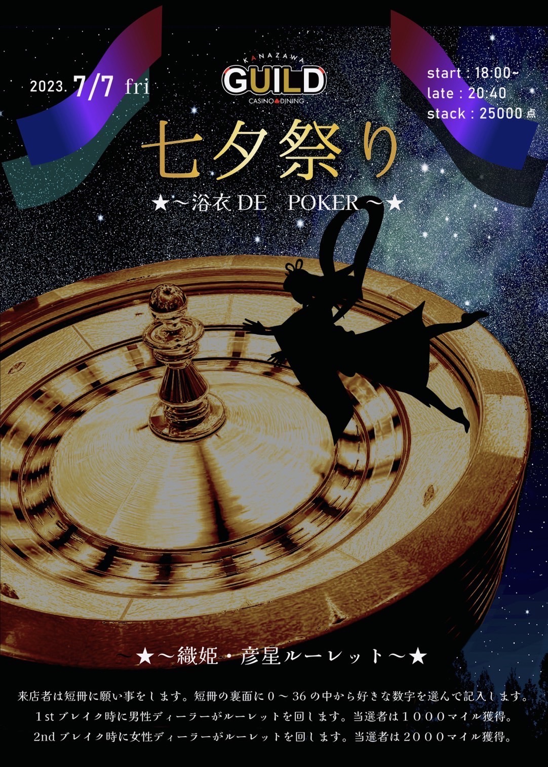 1stブレイクに彦星ディーラー、2ndブレイクに女の子ディーラーがルーレットをそれぞれ1度づつ投げます!