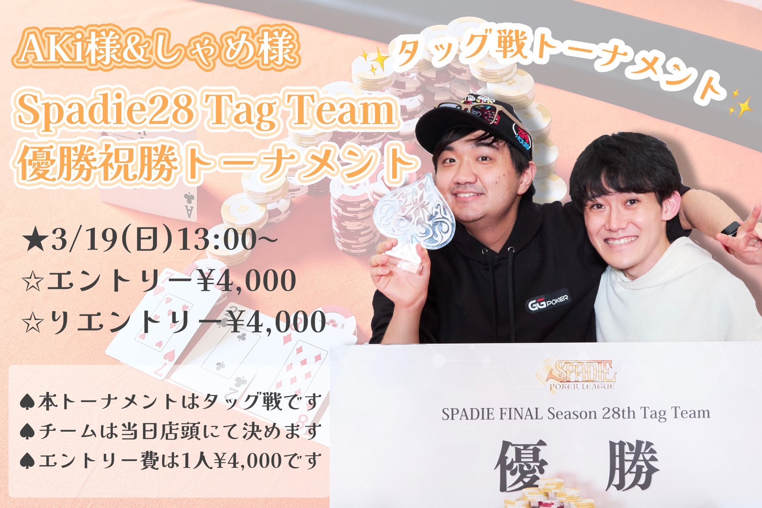 ※タッグのペアは当日店頭にてランダムに組まさせていただきます。