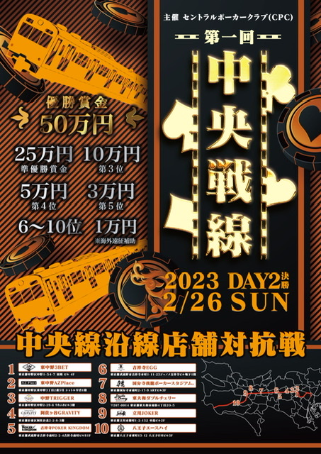 中央戦線10店舗に遊びに行くとスタンプがもらえます。トナメでもリングでも良いので、何かでポーカーをプレイしましょう。