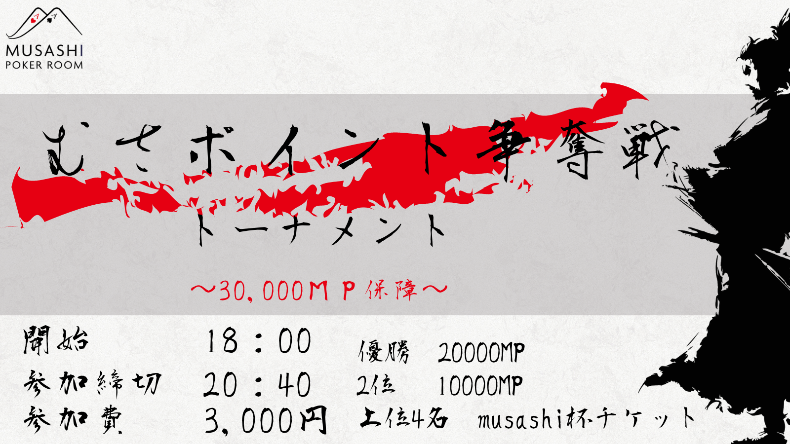 | ゲーム | 30,000点 / ノーリミット / テキサスホールデム / normal / MD(リングチップ) |