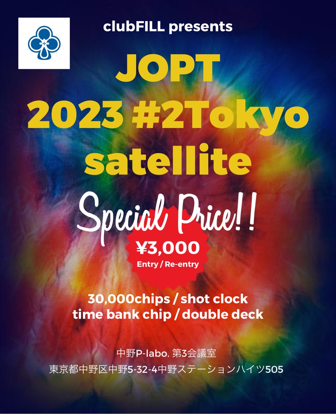 | 12/15(月) | 16:00 | 【JOPT】1000円で参加できる1卓限定 サテライト | EGP EBISU |