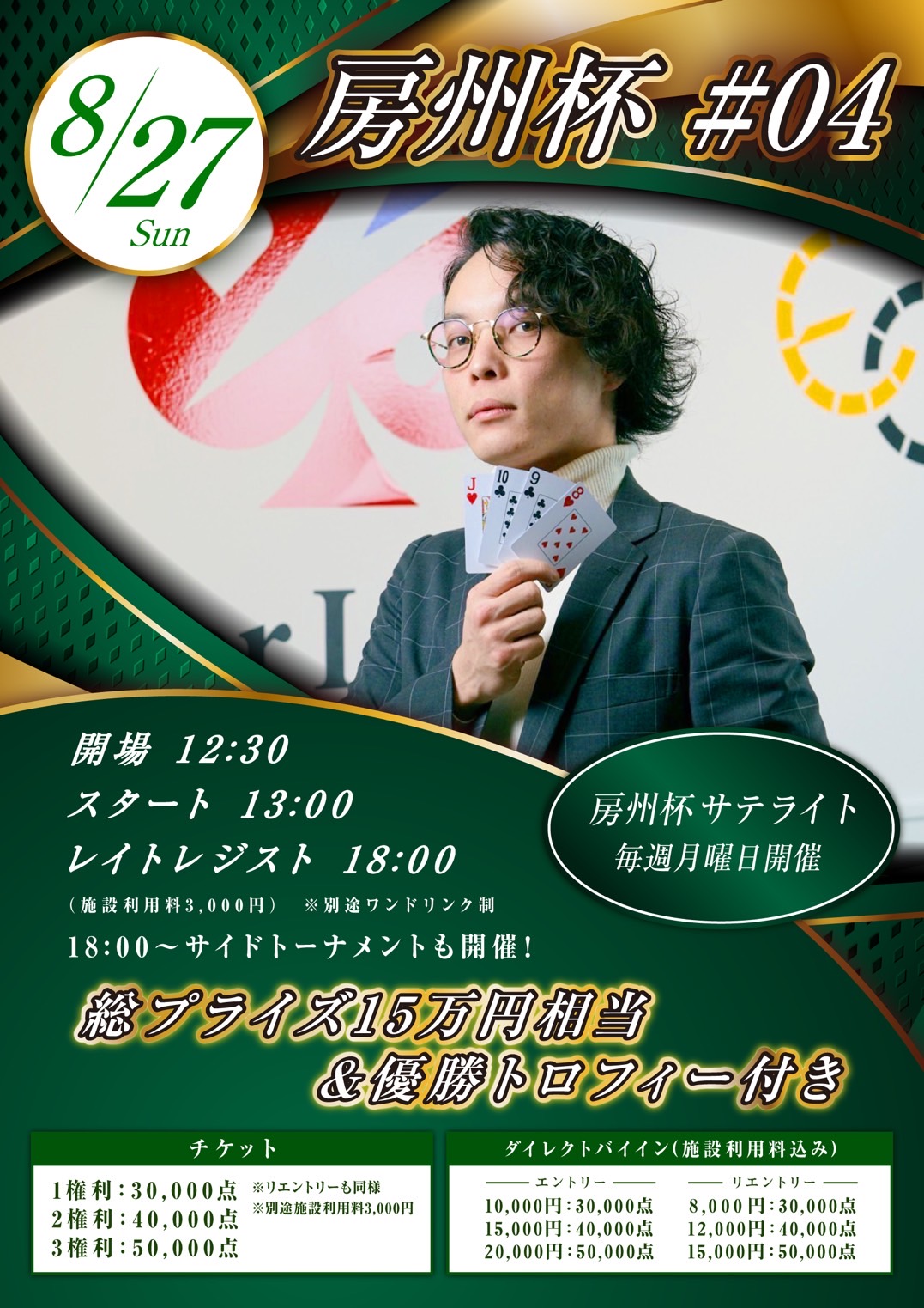 | 12/15(月) | 16:00 | 【JOPT】1000円で参加できる1卓限定 サテライト | EGP EBISU |