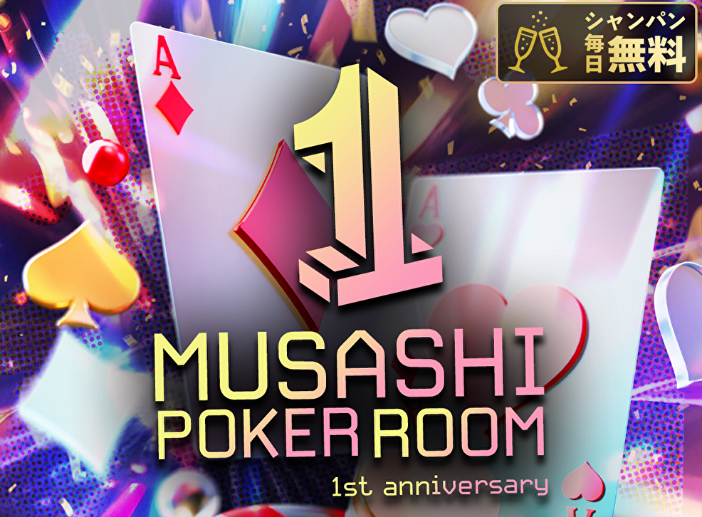 ・むさしポーカールーム1周年を記念していつもよりロングストラクチャーの特別な『周年メイントーナメント』を開催‼