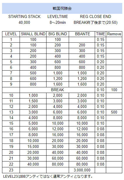 ※こちらのトーナメントは終了後のカジノエリア100Gプレゼント対象外となります。