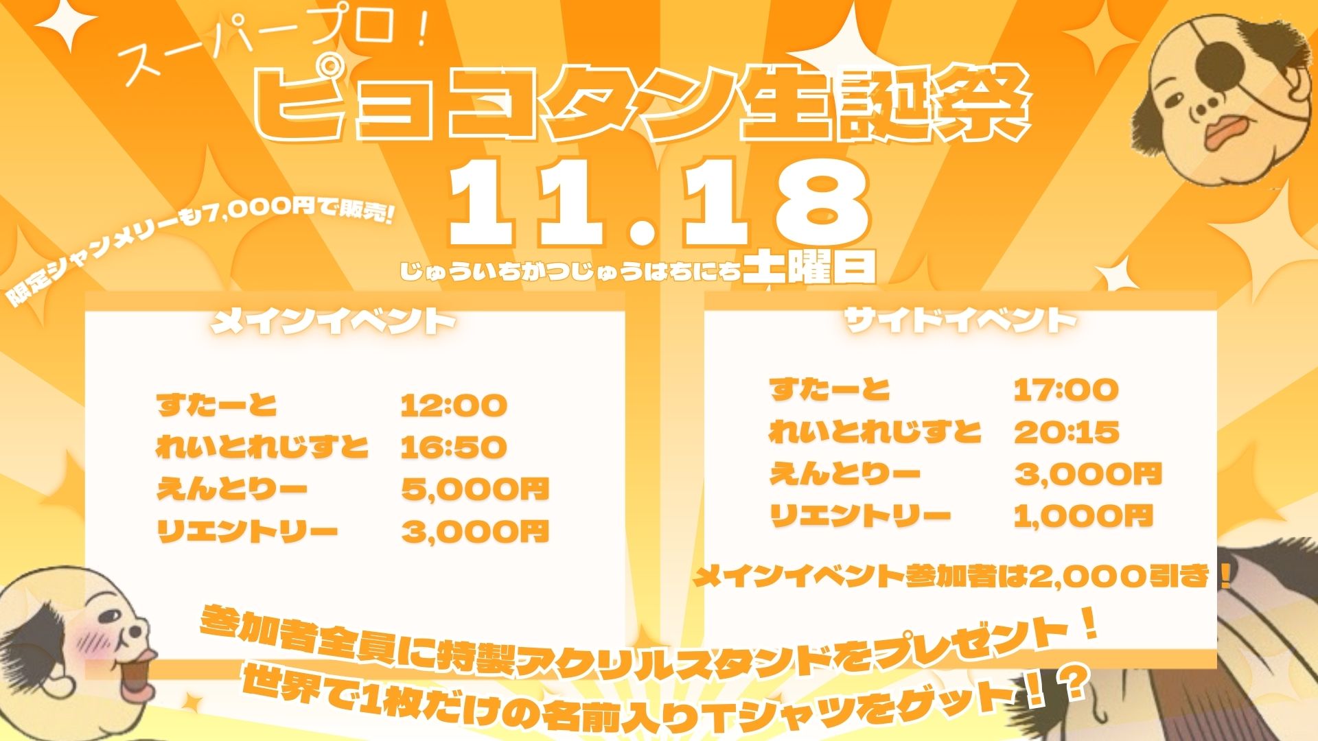 参加者全員に特製アクリルスタンドをプレゼント(メインとサイドでどちらか1つまで)