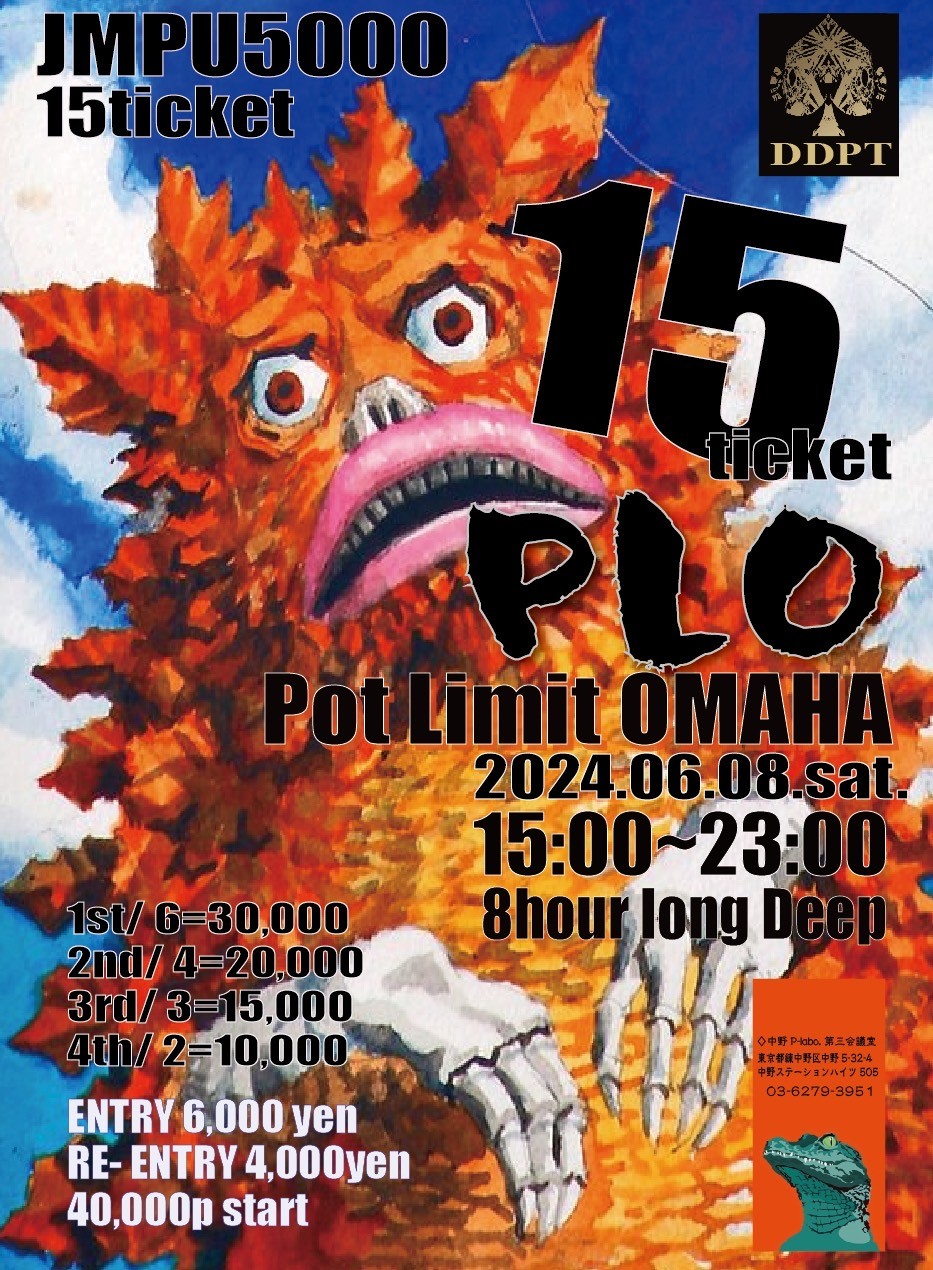 | 12/15(月) | 16:00 | 【JOPT】1000円で参加できる1卓限定 サテライト | EGP EBISU |