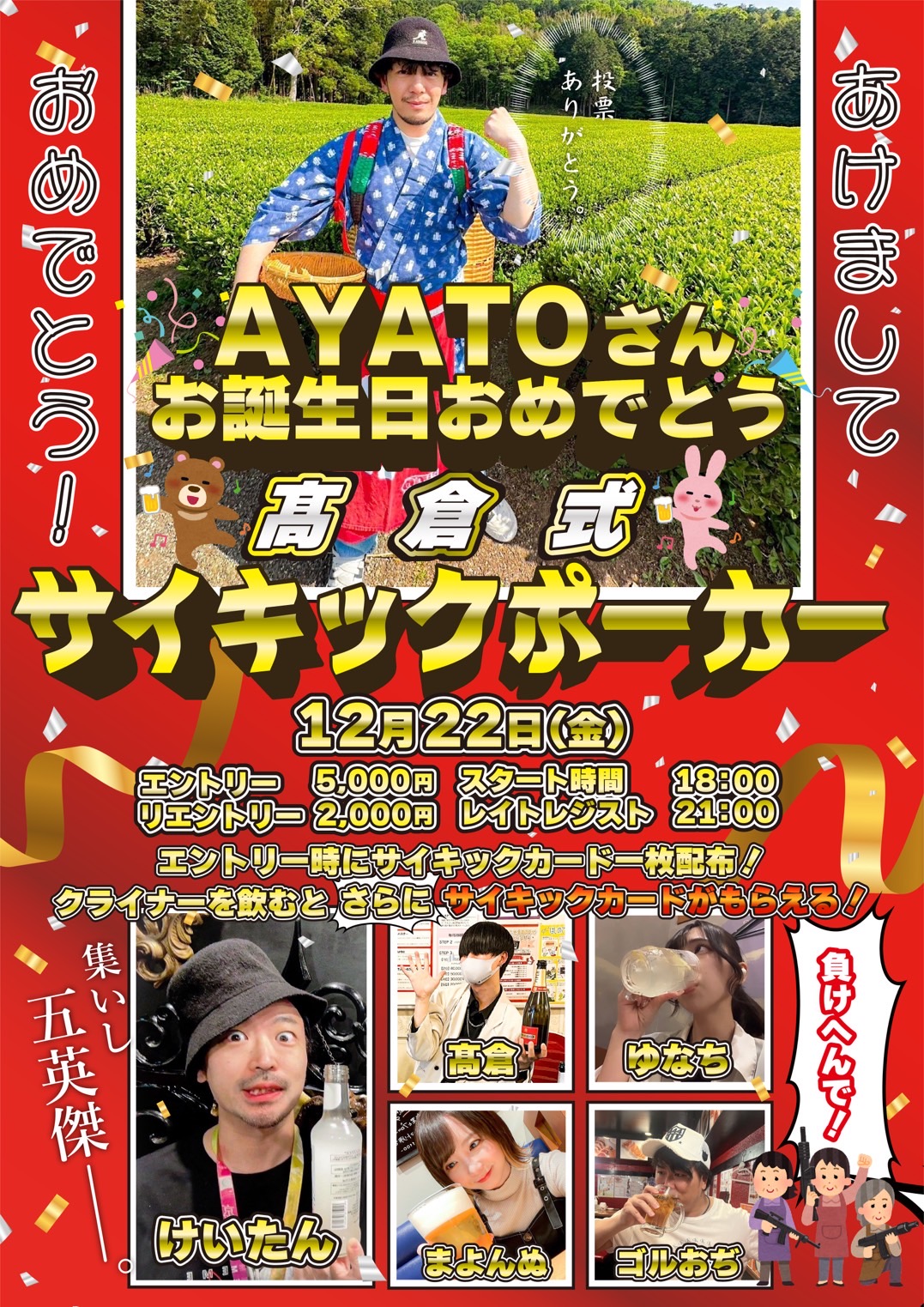 の乱闘必死なポーカーです。AYATOさんのお祝いに是非お越し下さい!