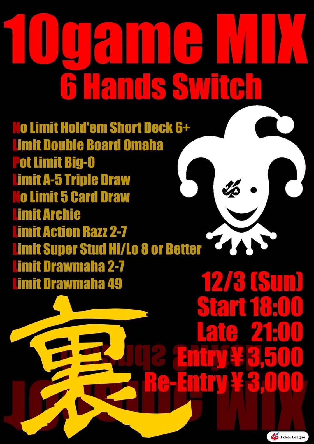 ※当日定められた順番で6ハンドごとにゲームを変えます。