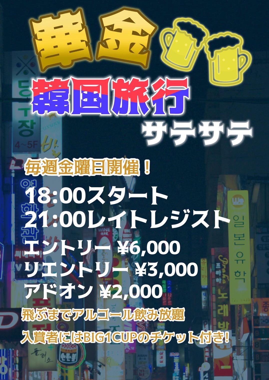 【1卓限定】華金飲み放題!!韓国旅行サテサテ♪