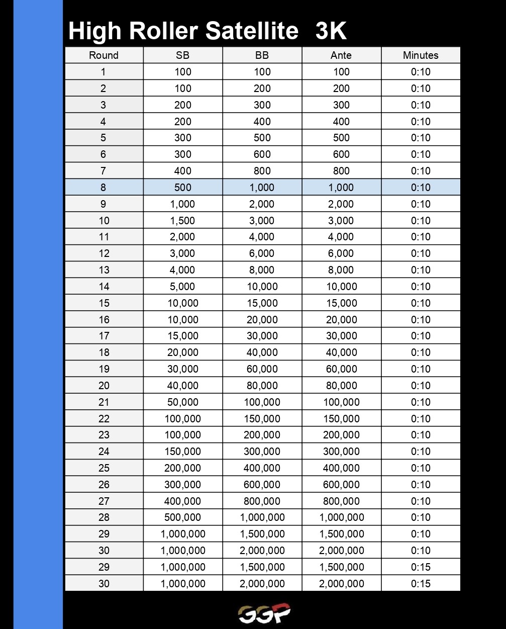 High Roller Satellite 3K 20:00から開催されるハイパーターボ・トーナメント。 通過すると#5 High Roller 参加可能!