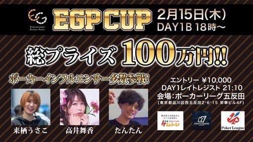 | 12/15(月) | 16:00 | 【JOPT】1000円で参加できる1卓限定 サテライト | EGP EBISU |
