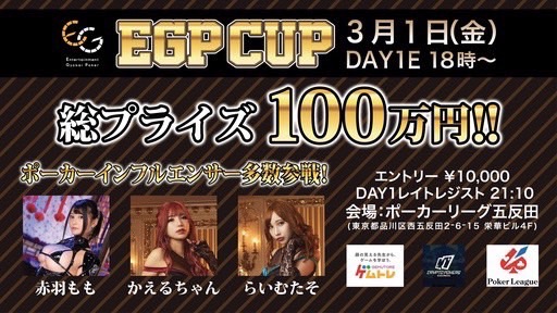 | 12/15(月) | 16:00 | 【JOPT】1000円で参加できる1卓限定 サテライト | EGP EBISU |
