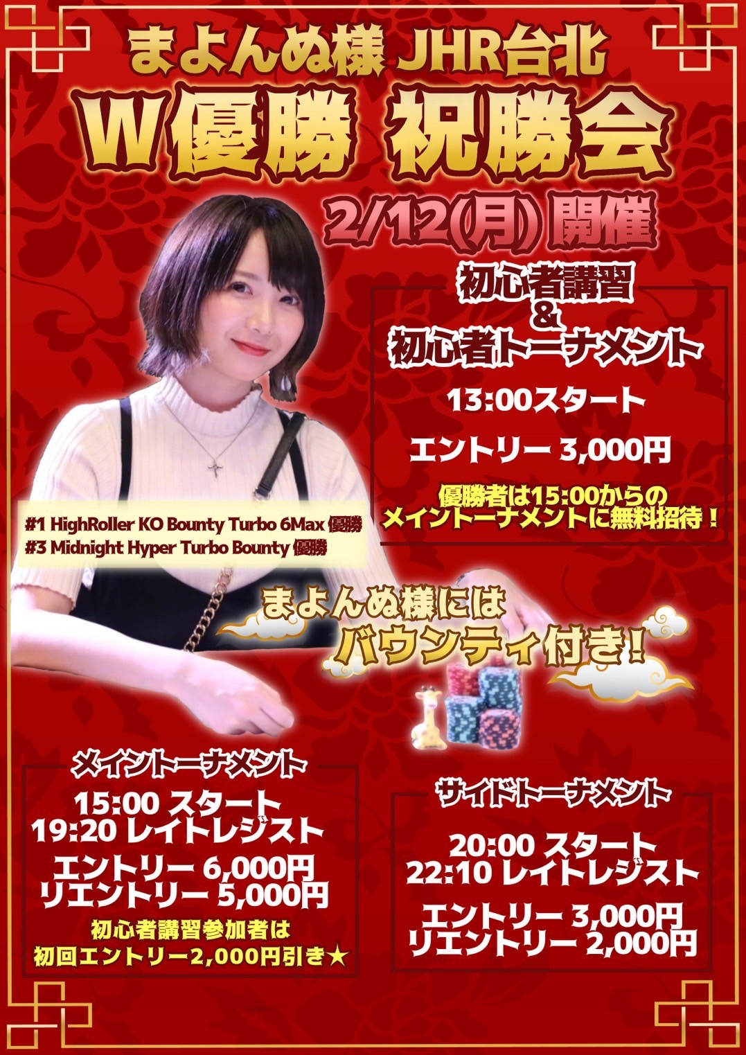 ※23:30までにトーナメントが終了しない場合チップ量で順位を決めさせて頂きます。