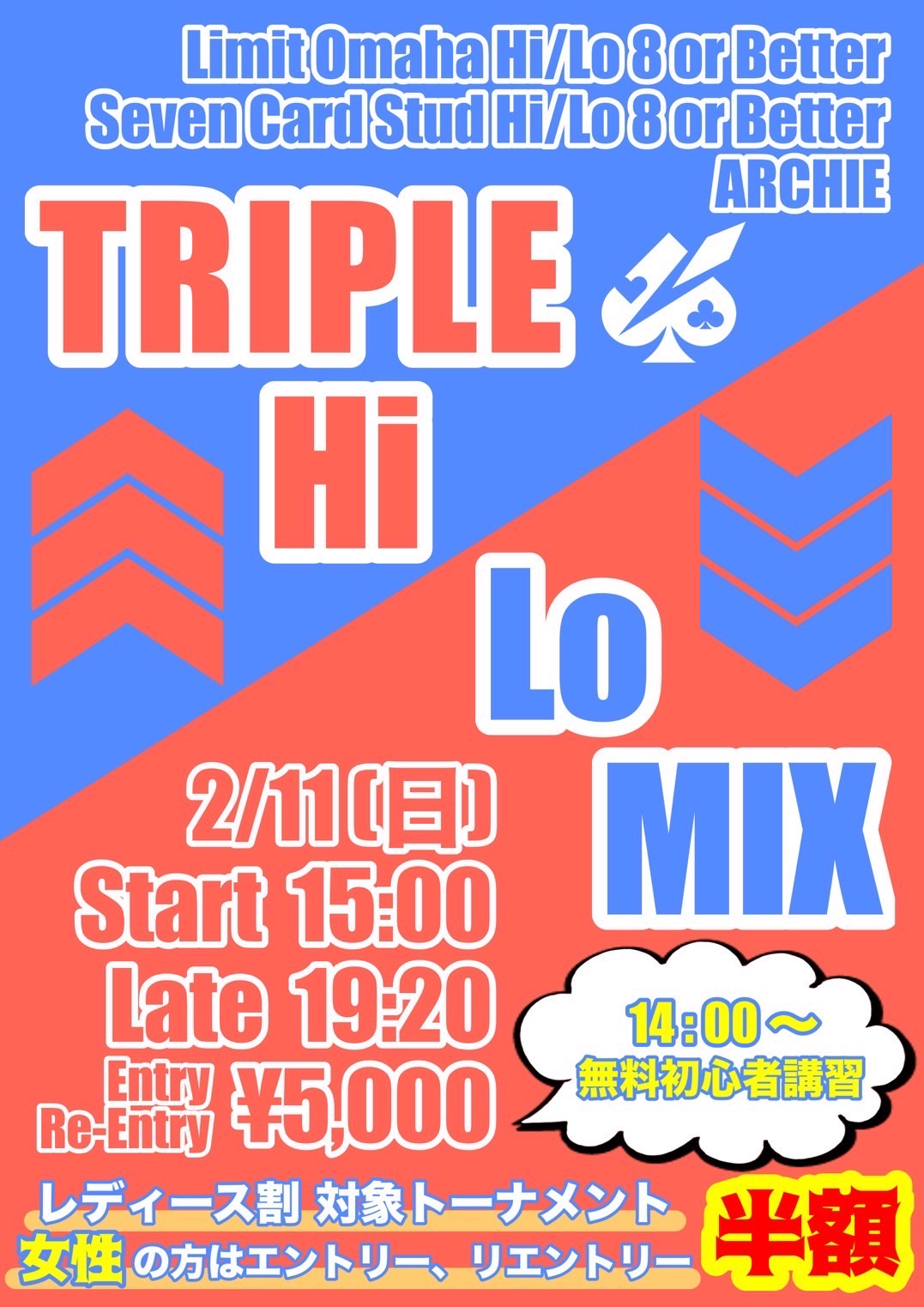 | 12/16(火) | 15:30 | 【♠︎SPADIE】Daily NLH 2K | 秋葉原カジノクエスト |