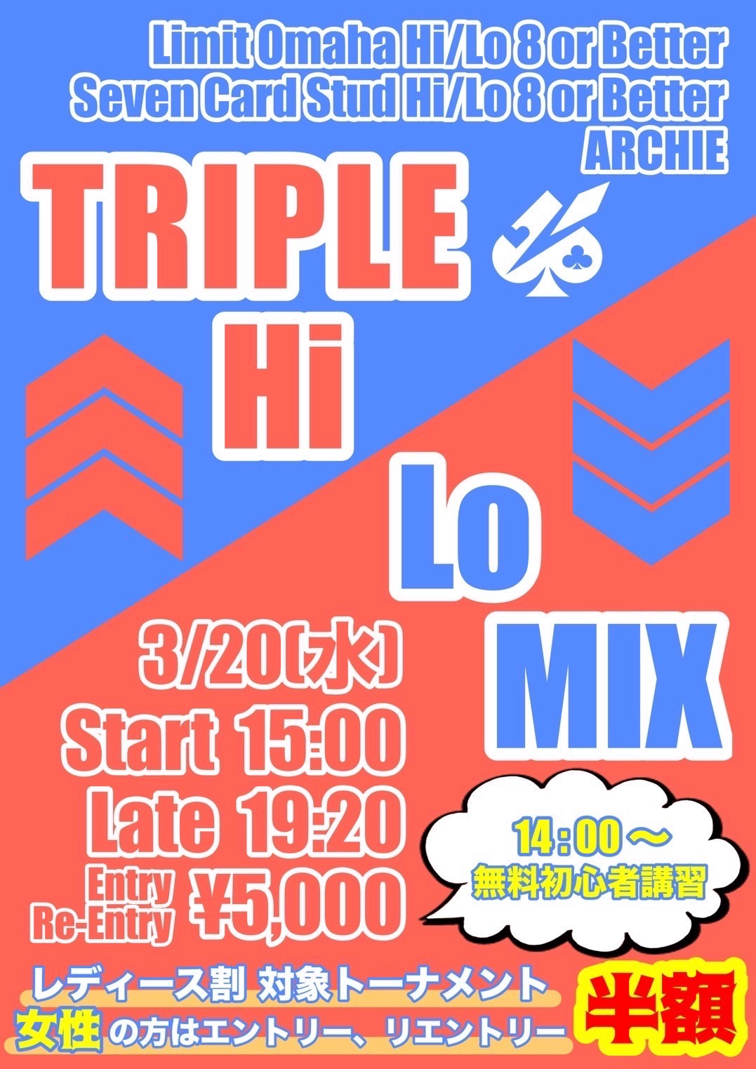 | 12/16(火) | 15:30 | 【♠︎SPADIE】Daily NLH 2K | 秋葉原カジノクエスト |