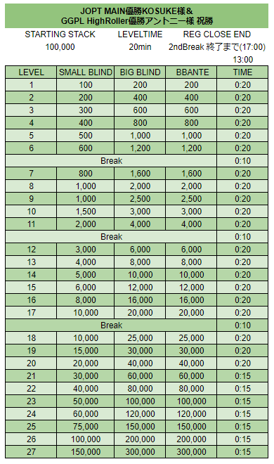 | ゲーム | 100,000点 / ノーリミット / テキサスホールデム / normal / カジクエベース |