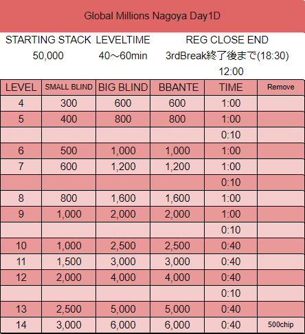 | ゲーム | 50,000点 / ノーリミット / テキサスホールデム / Long / Day1 |
