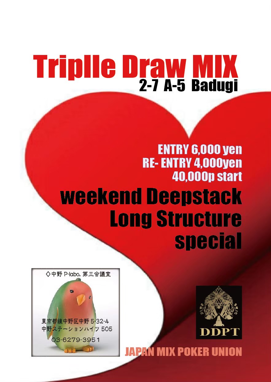 | 12/15(月) | 16:00 | 【JOPT】1000円で参加できる1卓限定 サテライト | EGP EBISU |