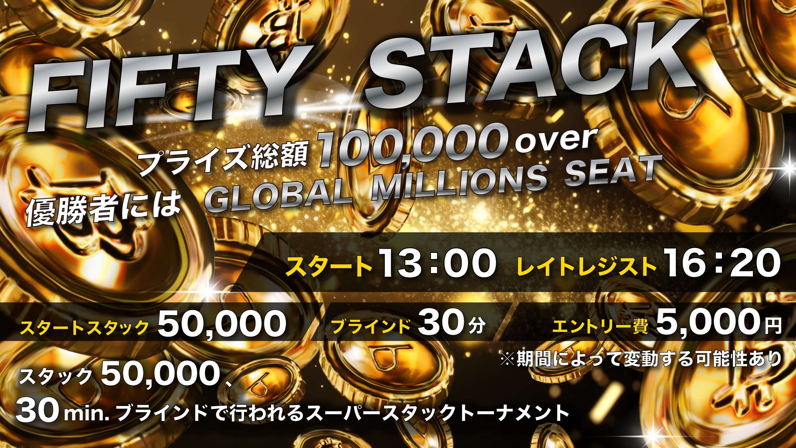 総額100,000Coinのほか、優勝者にはGLOBAL MILLIONS Seatを進呈。