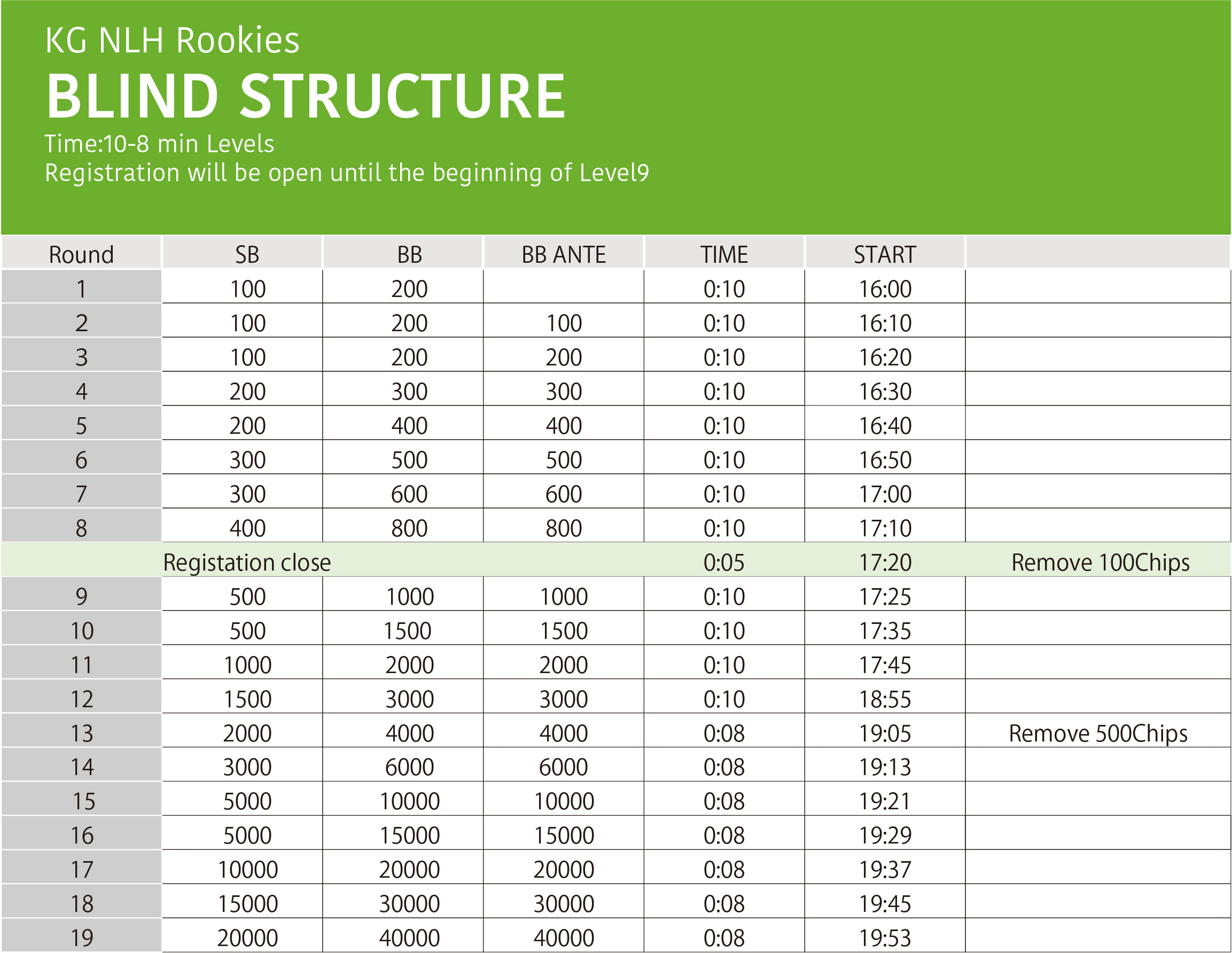 Stack 20,000 点スタート 10分ブラインド(変則)