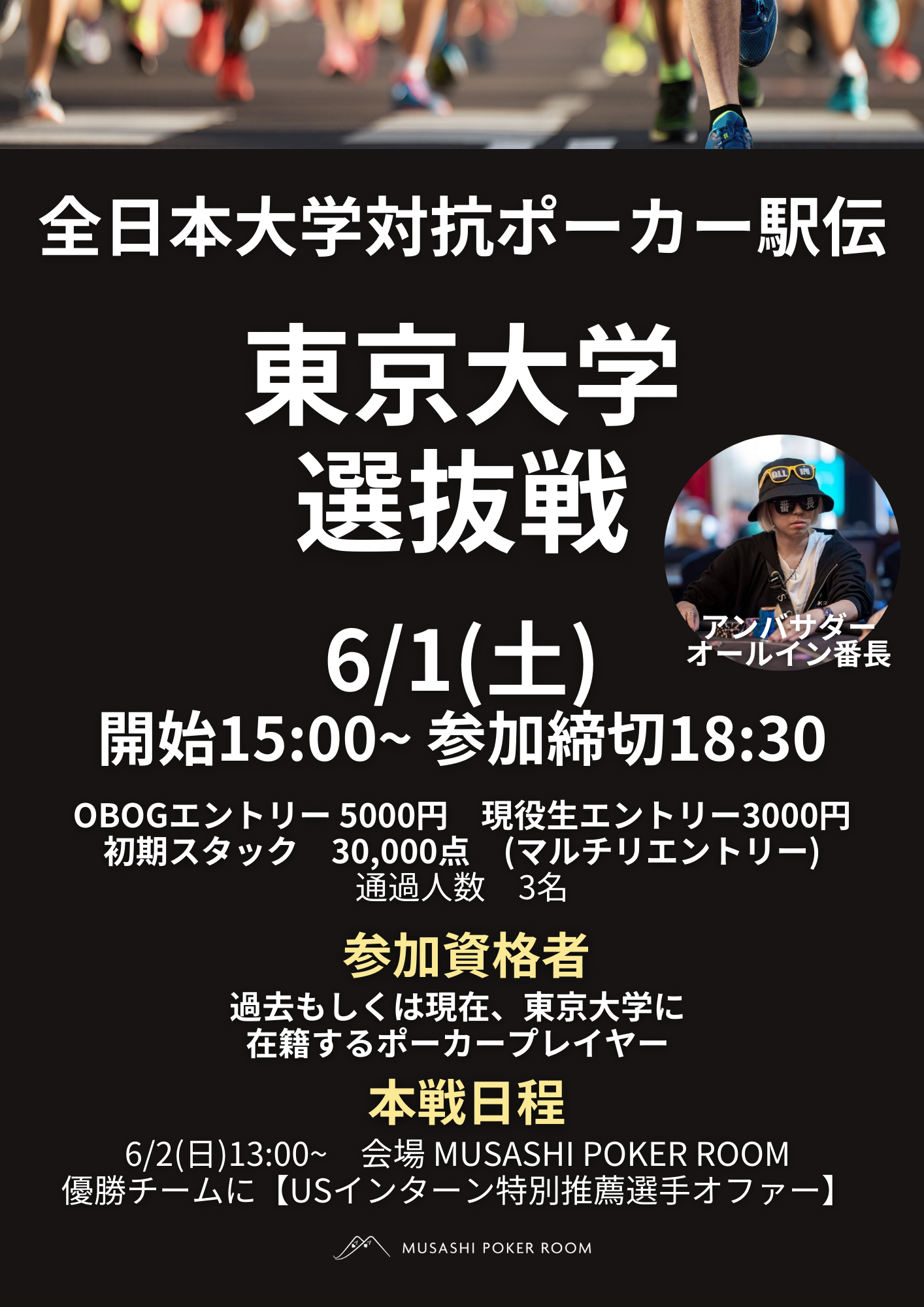 ポーカー日本一の大学を決定する【出身大学別ポーカー団体戦】です。