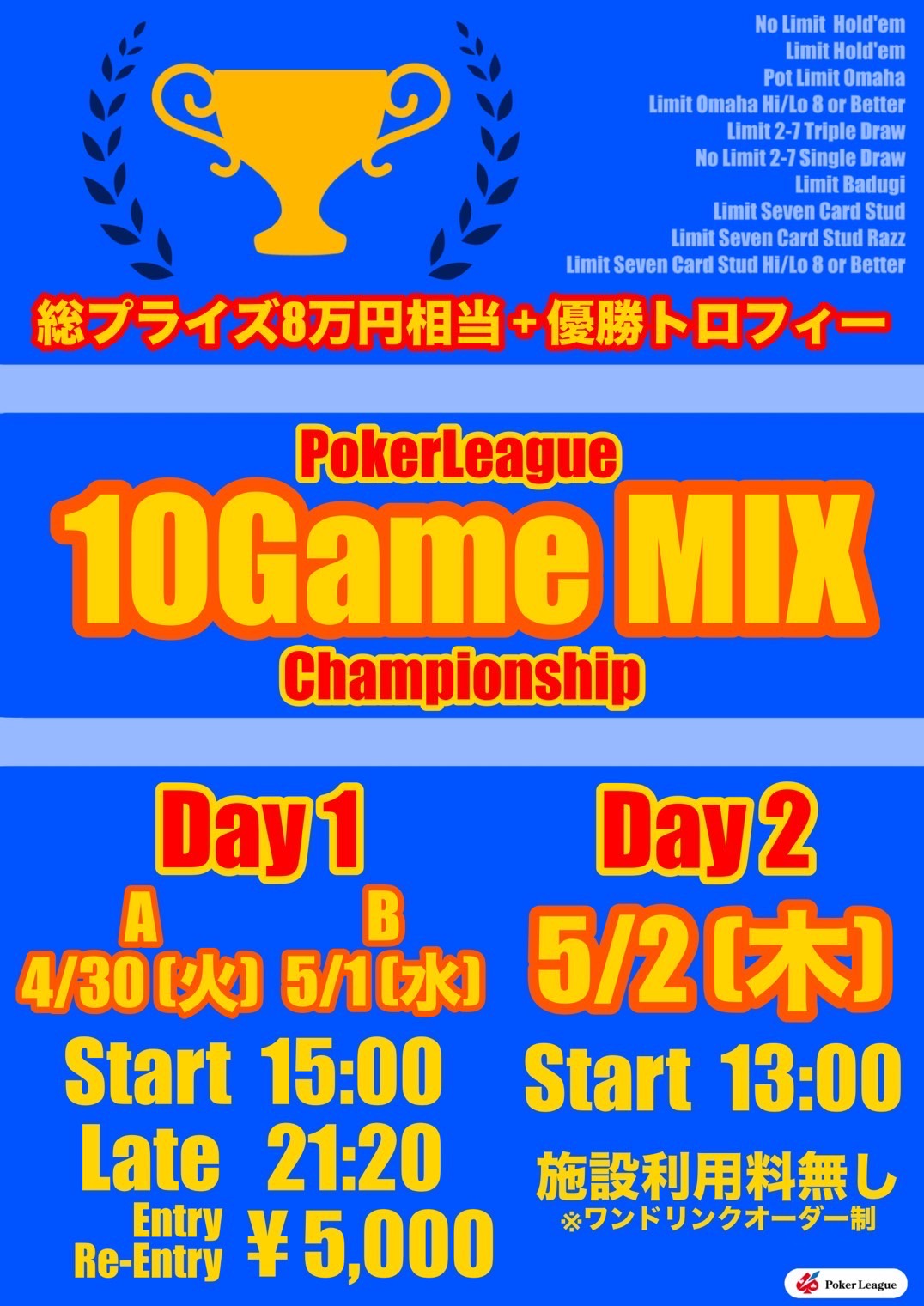| 店舗名 | PokerLeague五反田 |