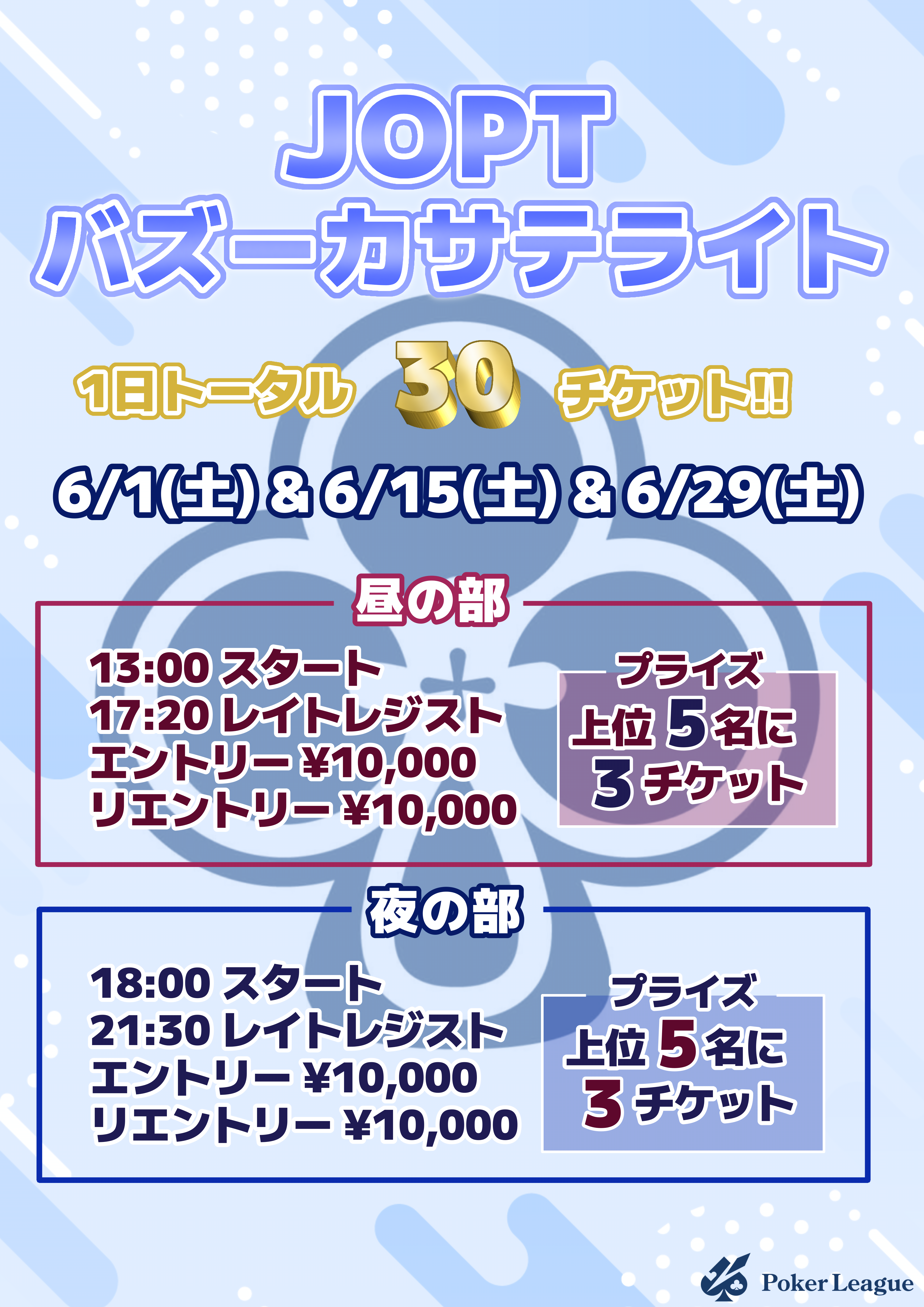| 12/15(月) | 16:00 | 【JOPT】1000円で参加できる1卓限定 サテライト | EGP EBISU |