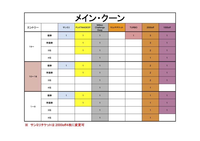 ♡2000円off/1000円offクーポン・・・トーナメント/リングゲームの2000円/1000off円割引としてご利用いただけます(st&goは不可)