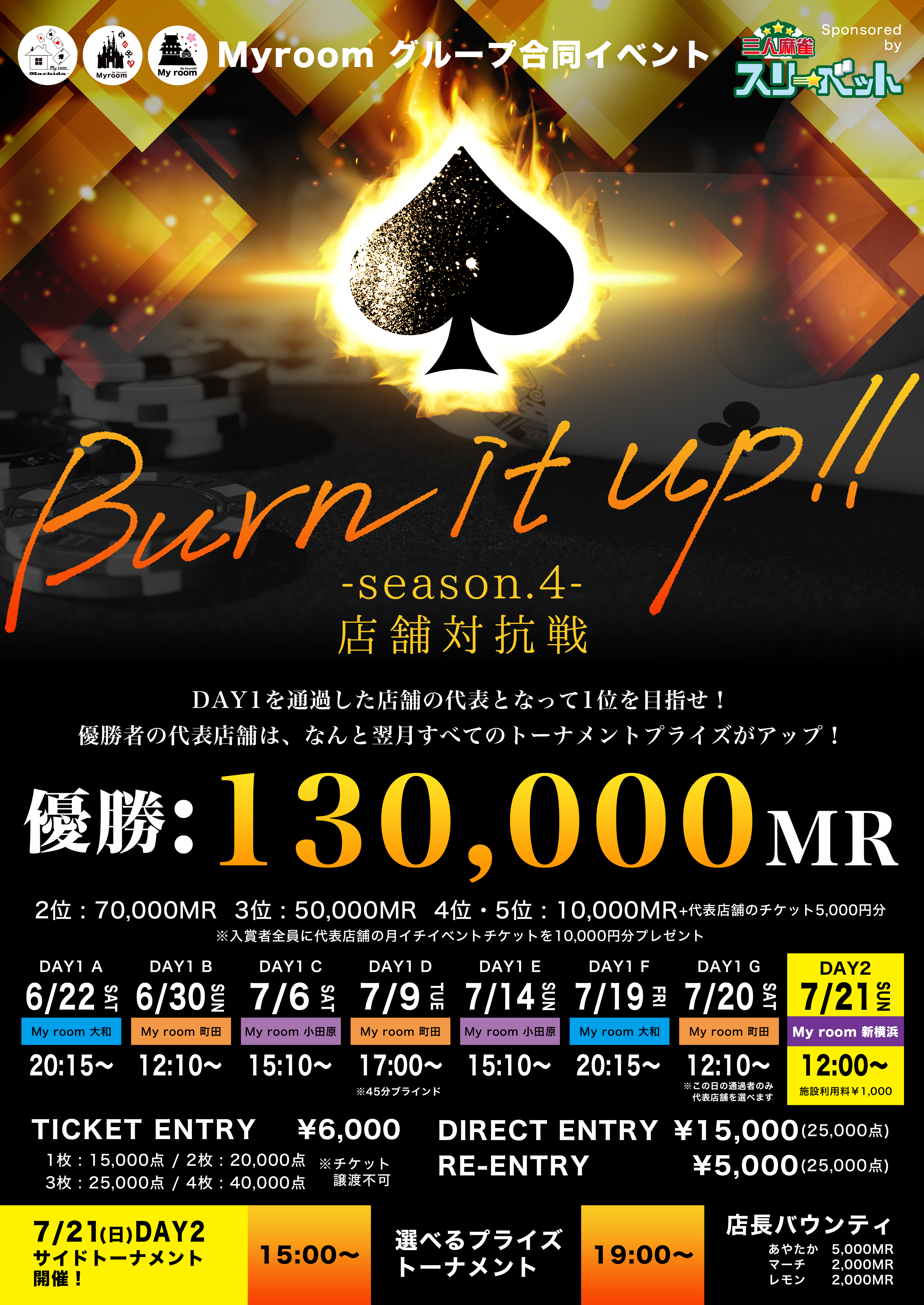 【Myroom合同イベント】Burn It Up! -season.4- 店舗対抗戦 DAY1 【ダイレクトバイインOK】