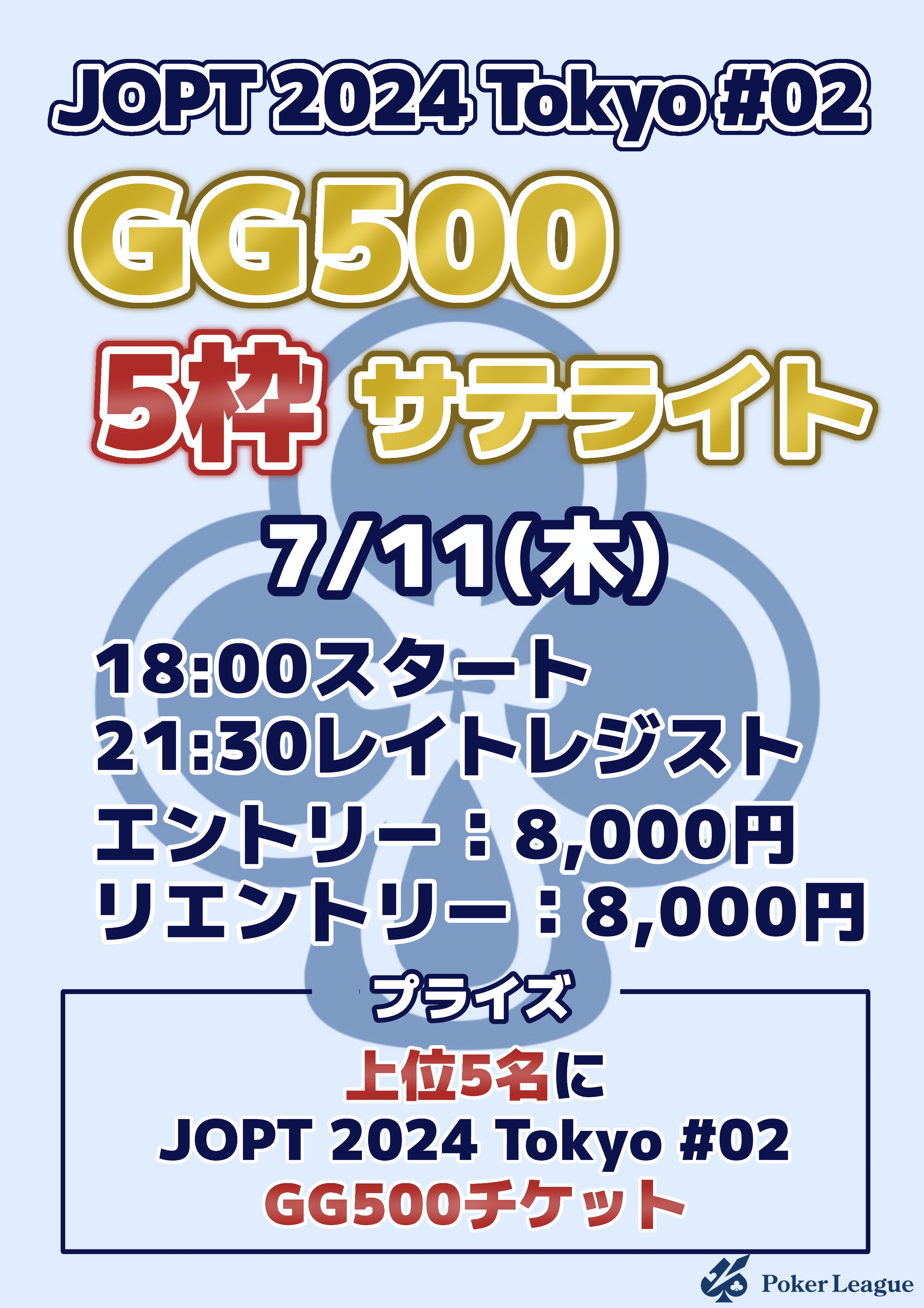【総額25万円相当‼】JOPT 2024 Tokyo #02「GG500」スペシャルサテライト【上位5名】