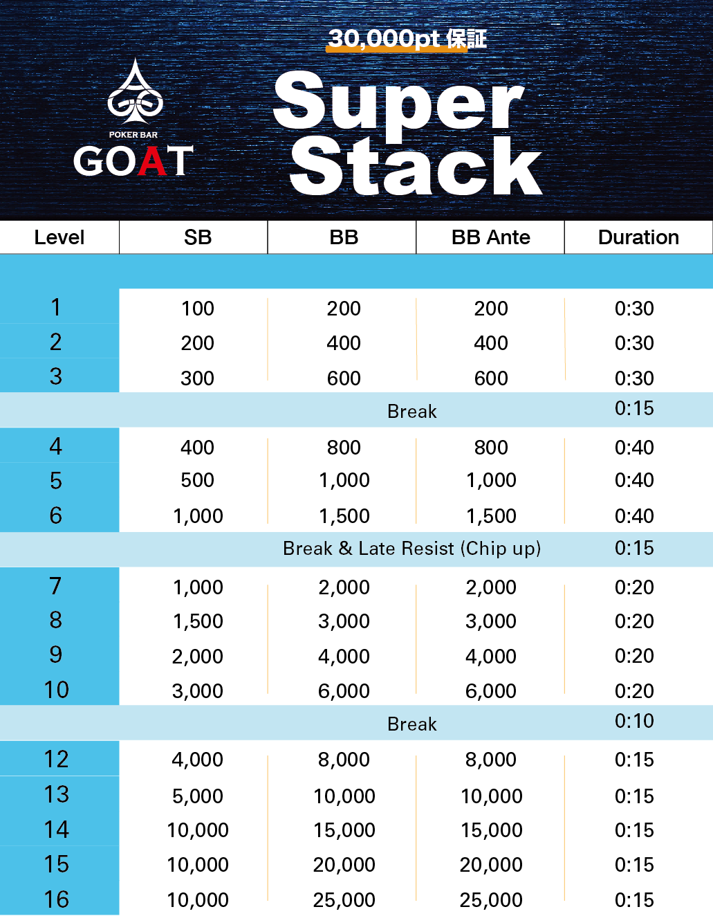 | ゲーム | 50,000点 / ノーリミット / テキサスホールデム / Long / Point |