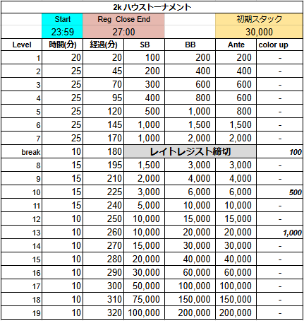 | ゲーム | 30,000点 / ノーリミット / テキサスホールデム / normal / Ticket |