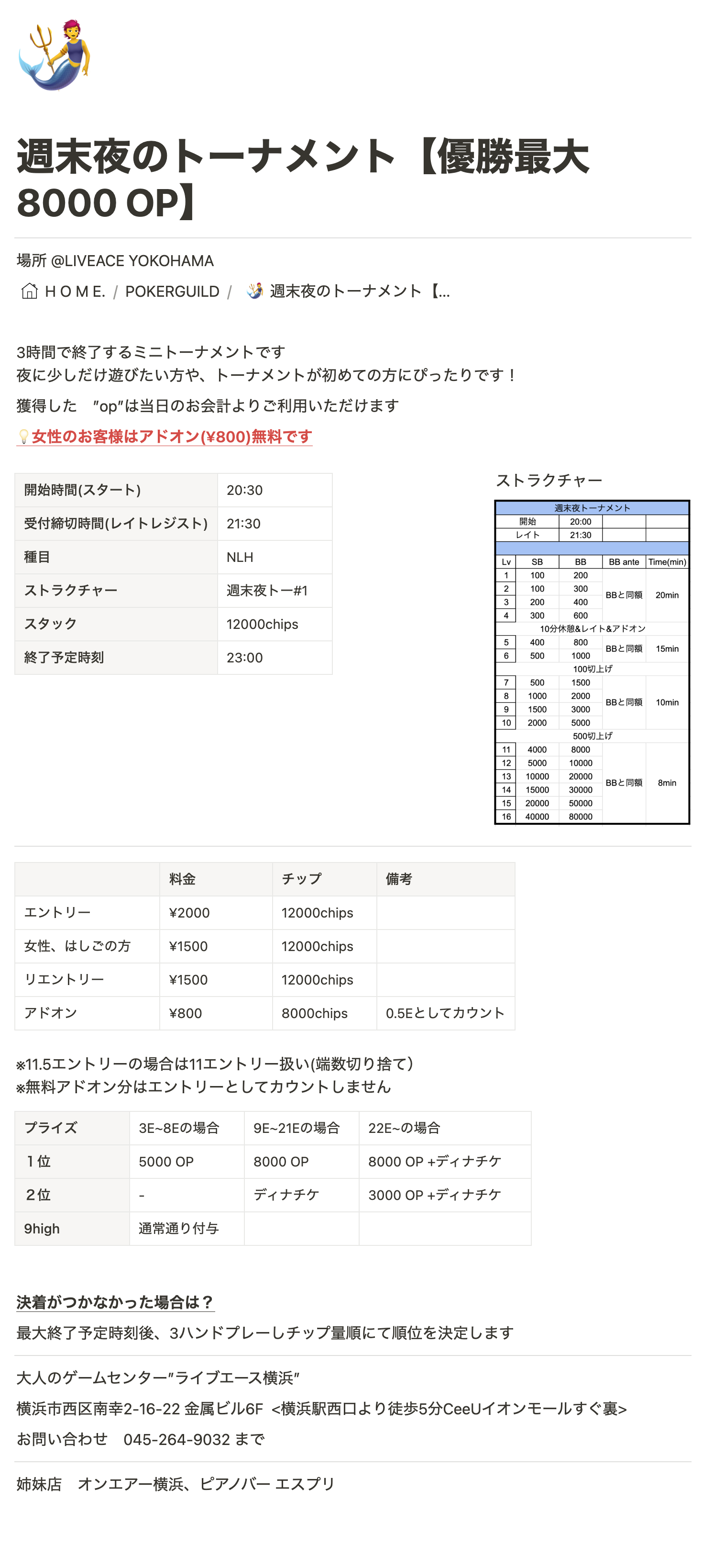 【女性¥1500(一般¥2000)】週末夜トーナメント〆切21:30【優勝最大8000 OP】