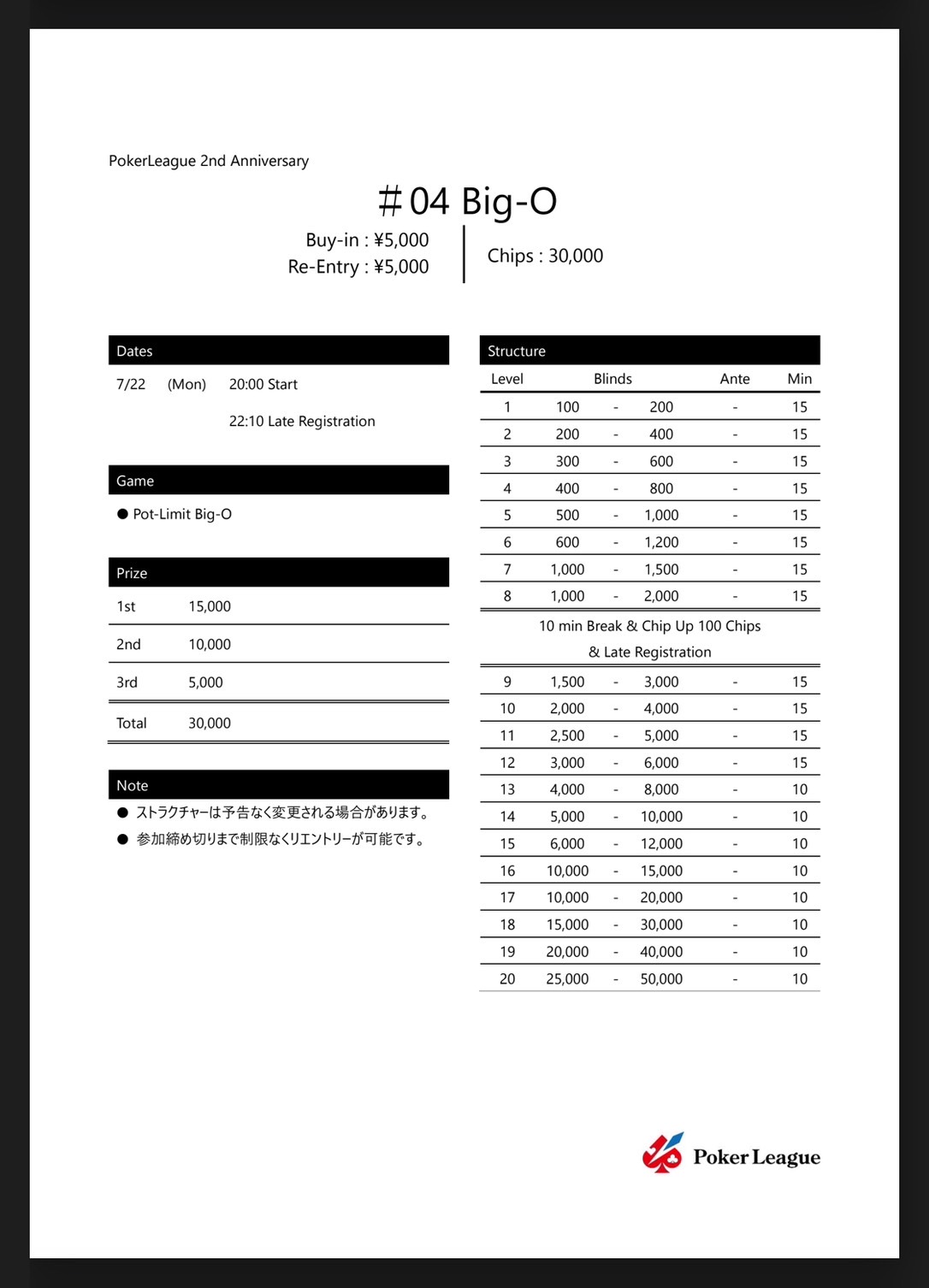 PokerLeague 2nd Anniversary 【#04 Big-O】