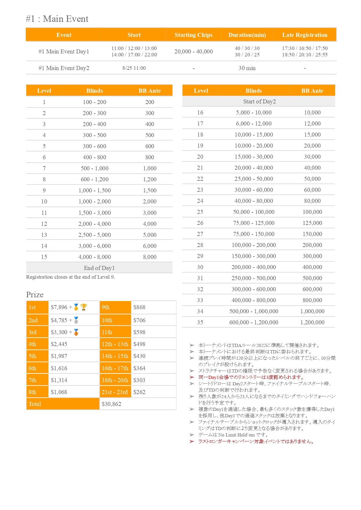 | 12/15(月) | 18:00 | 【JOPT 15Ticket】メガサテライト | Casino Live Tokyo |
