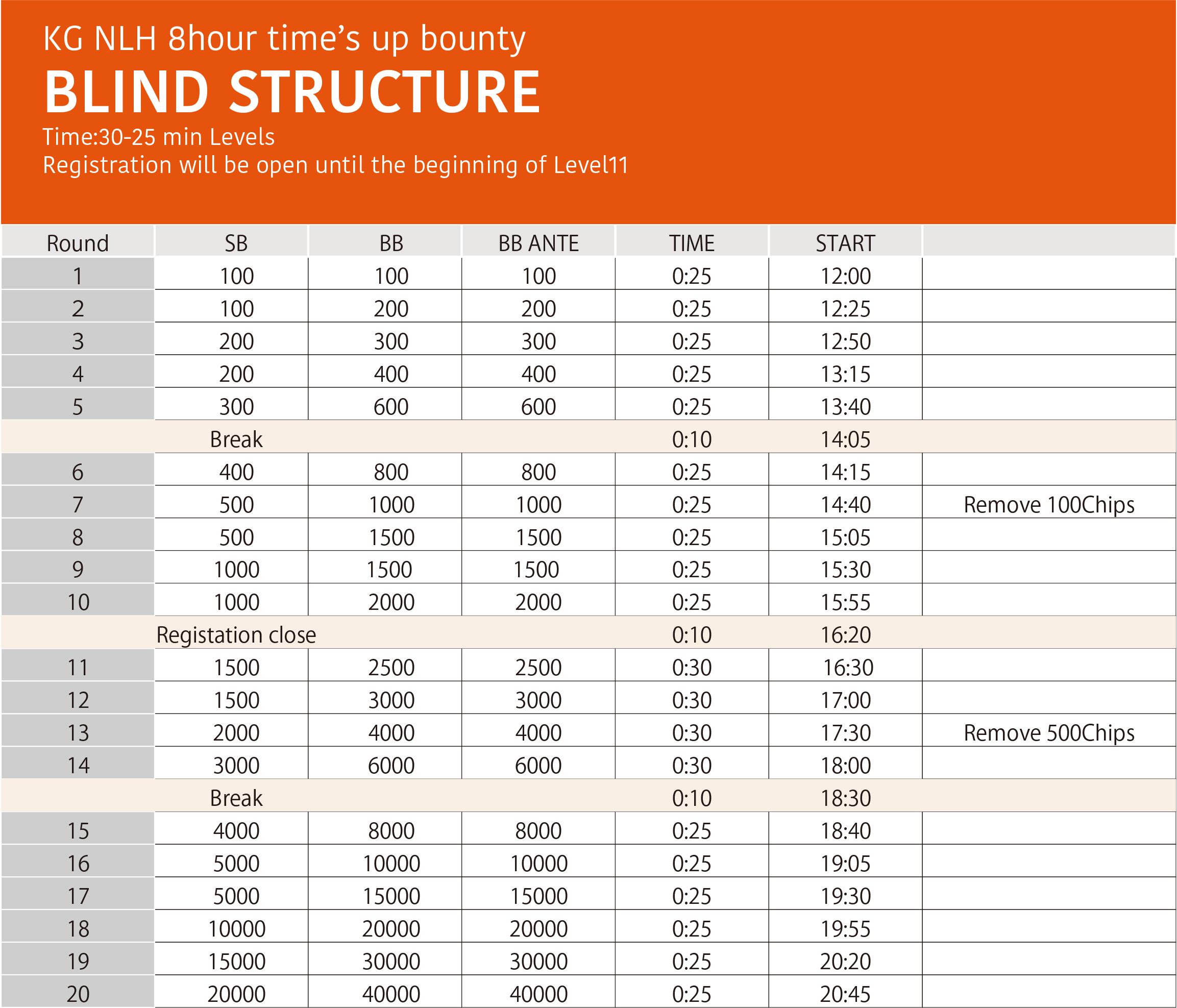 ※残り5人でポーカータイマーを停止し、ブラインド上昇はなくなります。