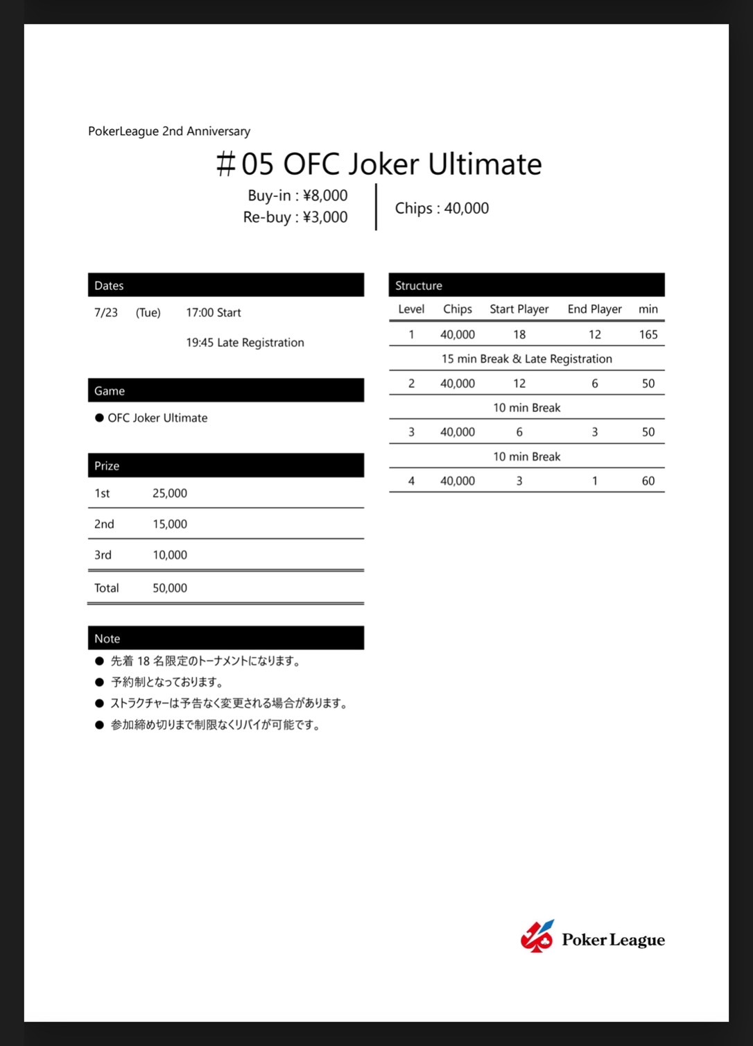 PokerLeague 2nd Anniversary 【#05 OFC Joker Ultimate】