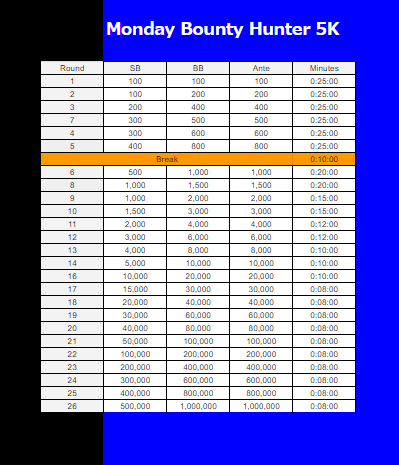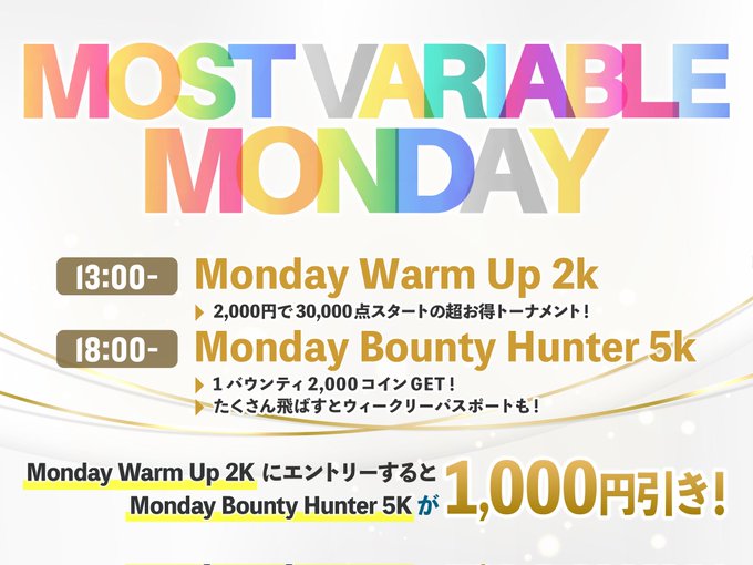 Monday Bounty Hunter 5k 月曜夜のデイリー・トーナメント。