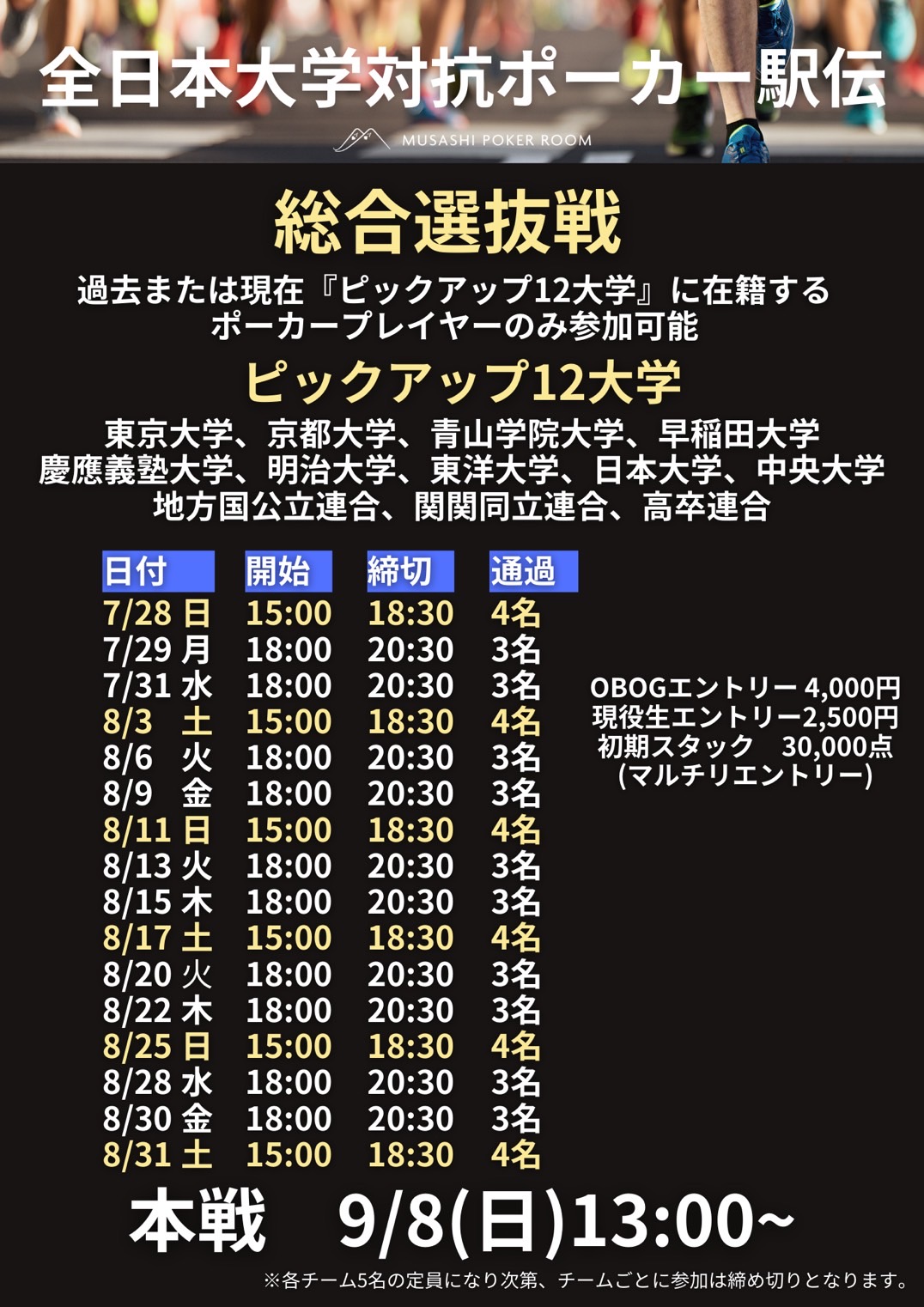 ポーカー日本一の大学を決定する【出身大学別ポーカー団体戦】です。