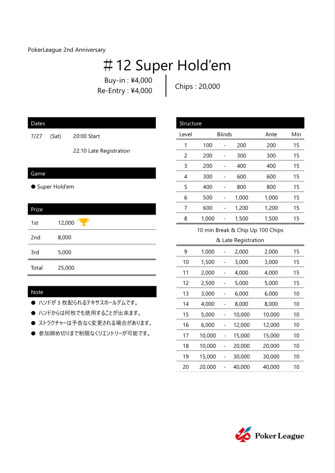 PokerLeague 2nd Anniversary 【#12 Super Hold'em】