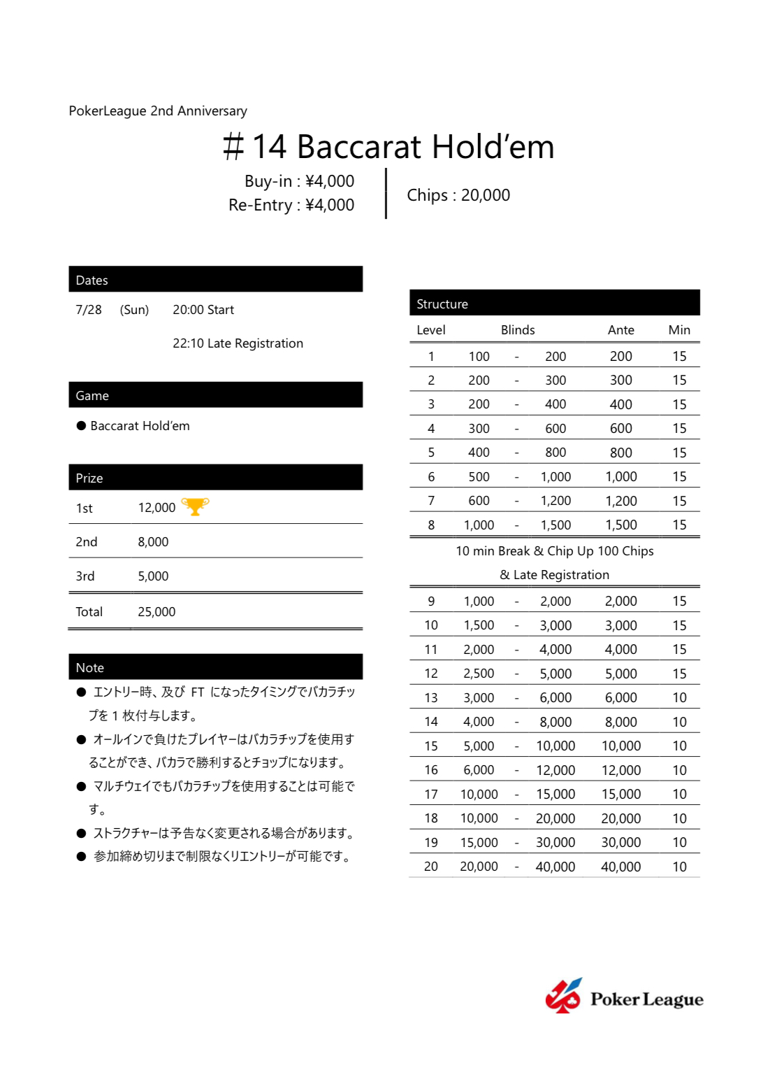PokerLeague 2nd Anniversary 【#14 Baccarat Hold'em】