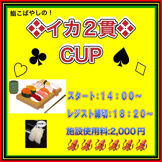 鮨こばやし“イカ2貫”CUP!!こちらのトーナメントでは、入賞者には、吉祥寺の高級お寿司店【鮨と肴 こばやし】さんのお食事券をGETできちゃうトーナメントを開催しちゃいます♪♪そして入賞者にはB.S.O.P. LEAGUEチケットも進呈♪