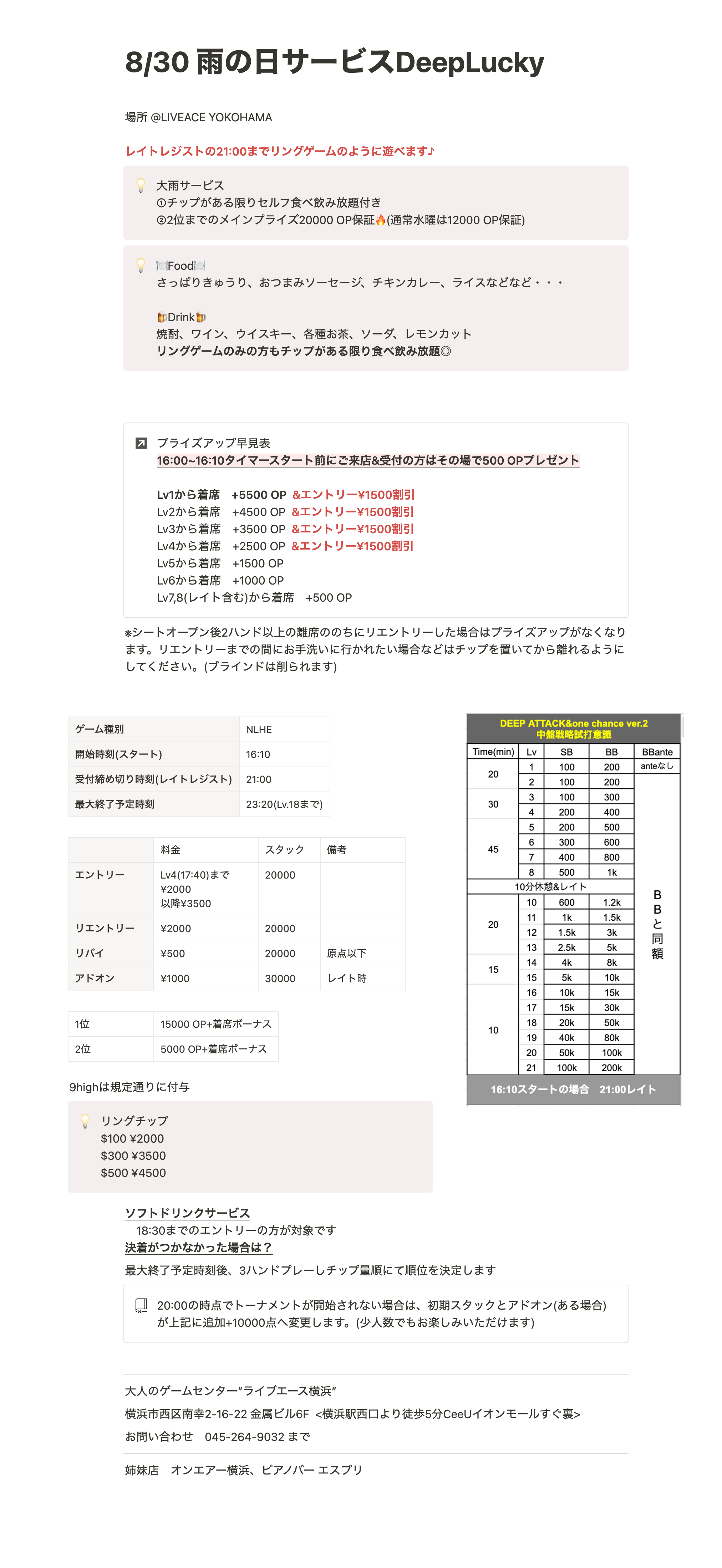 【8/30雨サービスイベント】♠️DeepLucky♠️ レイト21:00【水曜比プライズ60%アップ】