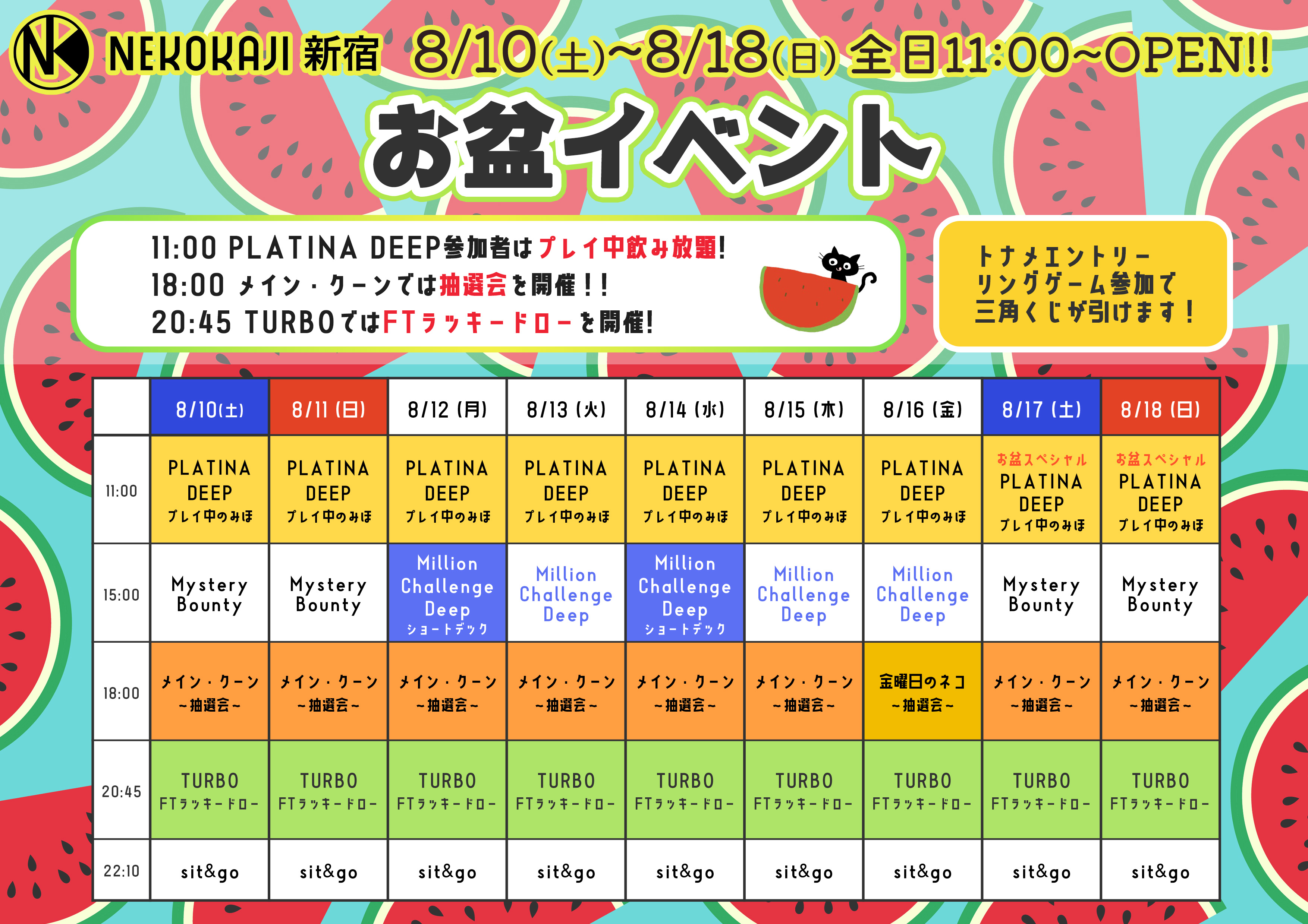 ♡PLATINA DEEP・・・土日祝11:00〜開催されるトーナメントに無料でエントリーできます