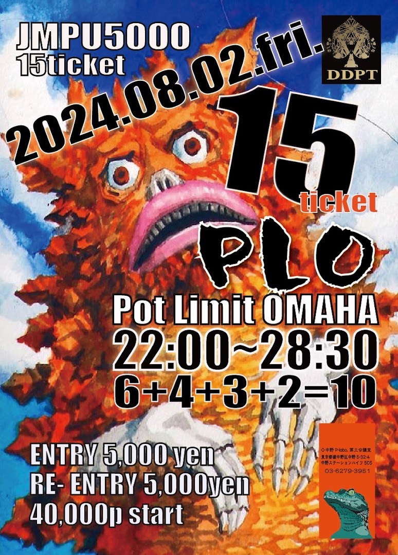 | 12/15(月) | 16:00 | 【JOPT】1000円で参加できる1卓限定 サテライト | EGP EBISU |