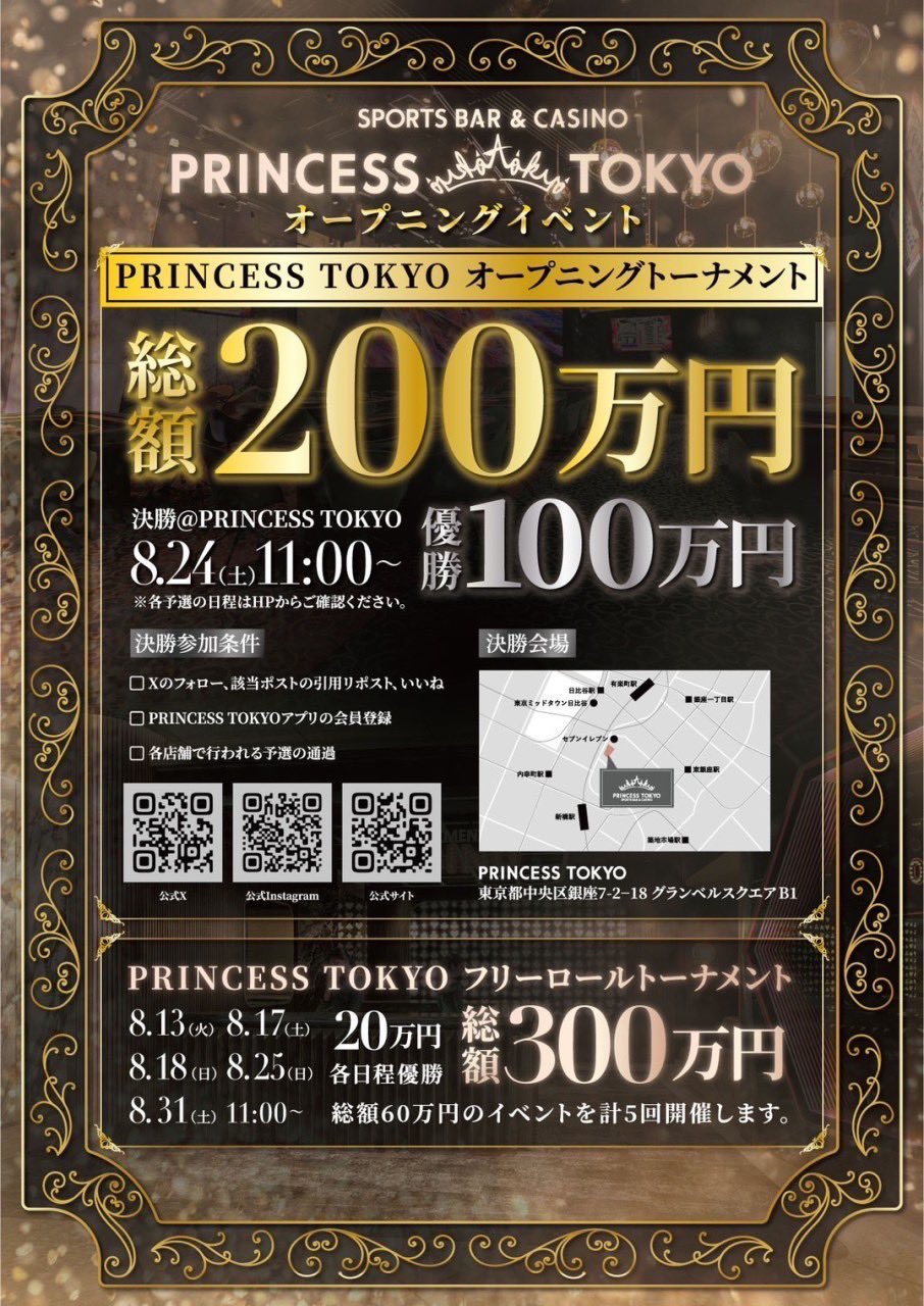 上位【3名】が8/24(土)にPRINCESS TOKYO様で開催するオープニングトーナメントのDAY2に参加できます❗️