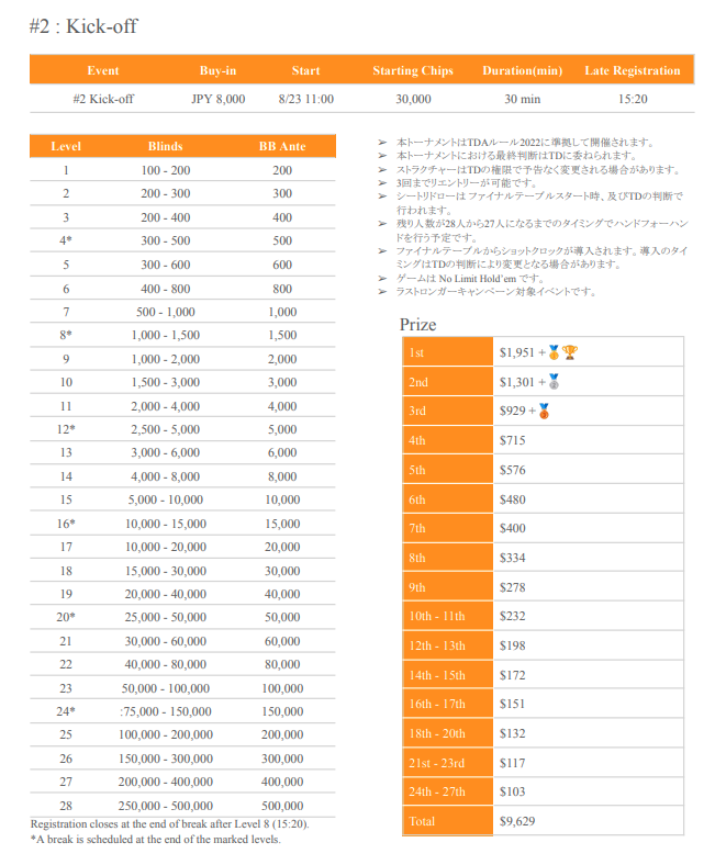 | 公式ページ | https://pokerjapan.jp/wp-content/uploads/2024/07/SPADIE-34th-Players-Guide.pdf |