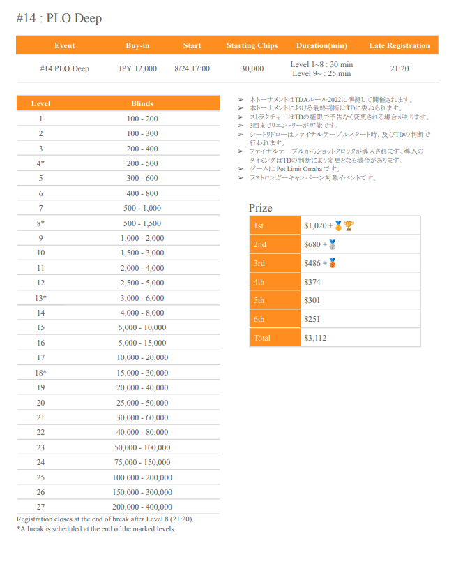 | 公式ページ | https://pokerjapan.jp/wp-content/uploads/2024/07/SPADIE-34th-Players-Guide.pdf |