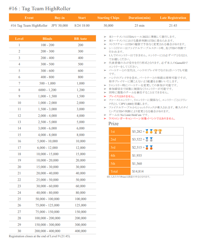 | 公式ページ | https://pokerjapan.jp/wp-content/uploads/2024/07/SPADIE-34th-Players-Guide.pdf |