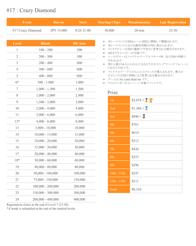 | 公式ページ | https://pokerjapan.jp/wp-content/uploads/2024/07/SPADIE-34th-Players-Guide.pdf |